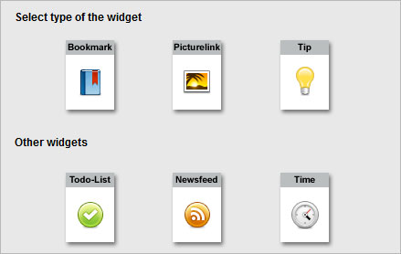 The various widgetsWith "+ Widget" you can add one of the six widgets:
